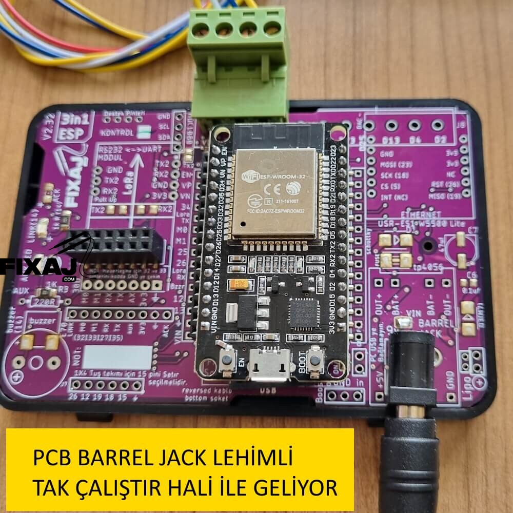 - 3in1 ESP32 PCB (RS232 , Barrel jack ve 4'lü klemens lehimlenmiş hazır halde )